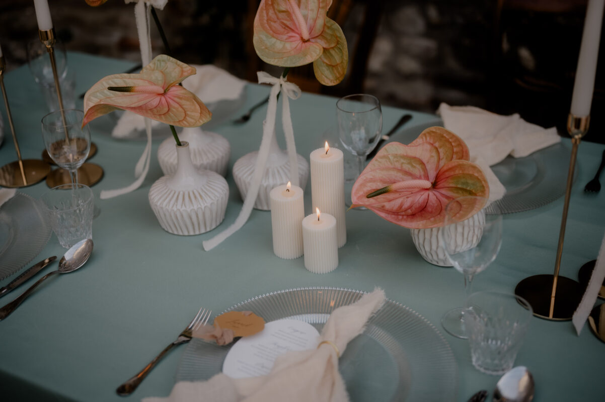 Ihr liebt es schlicht, nicht zu überladen und dennoch schick? Dann ist diese Konzeptvariante perfekt für Euch, denn sie ist unser Allrounder. Man kann sie einfach auf jeder Tischform und Tischgröße einsetzten. Wir können Eure Stil & Farbvorstellungen durch die richtigen Accessoires & die Blumenauswahl umsetzten. Diese Dekoration ist ein schönes Zusammenspiel zwischen verschiedenen Kerzenvarianten mit farblich passenden Vasen die floral gefüllt werden. Alle Accessoires die Deine Tischdekoration abrunden wie Kerzen, Kerzenständer, Teelichter, floral gefüllte Vasen, sowie die Blütenauswahl sind in unseren Tischpreisen inkludiert. Der Allrounder für jede Tischform!